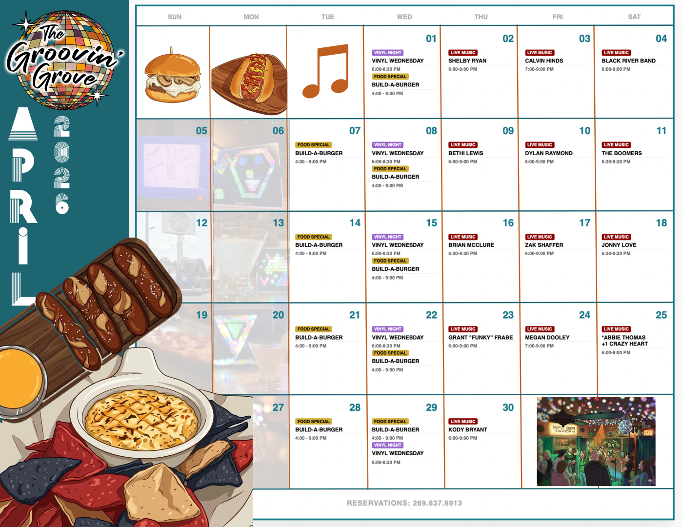 The Groovin’ Grove is open Tuesday through Saturday from 4 PM to 9 PM (or whenever the music and good times wind down). This 21+…