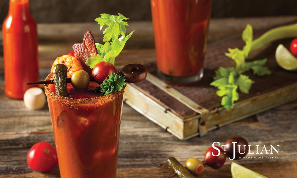 Kick back at the St. Julian Paw Paw tasting room and build your dream Bloody Mary at our ultimate Bloody Mary Bar! Start with your choice of vodka, then pile it high with all the garnishes your heart desires. We’re talking pickles, celery, carrot sticks, olives, green onions, cheese skewers, flavorful rims, hot sauces, pickle juice, steak sauce, and plenty more to make it your own. Each Bloody Mary is $14 and available all weekend long while supplies last. Come thirsty and get creative!