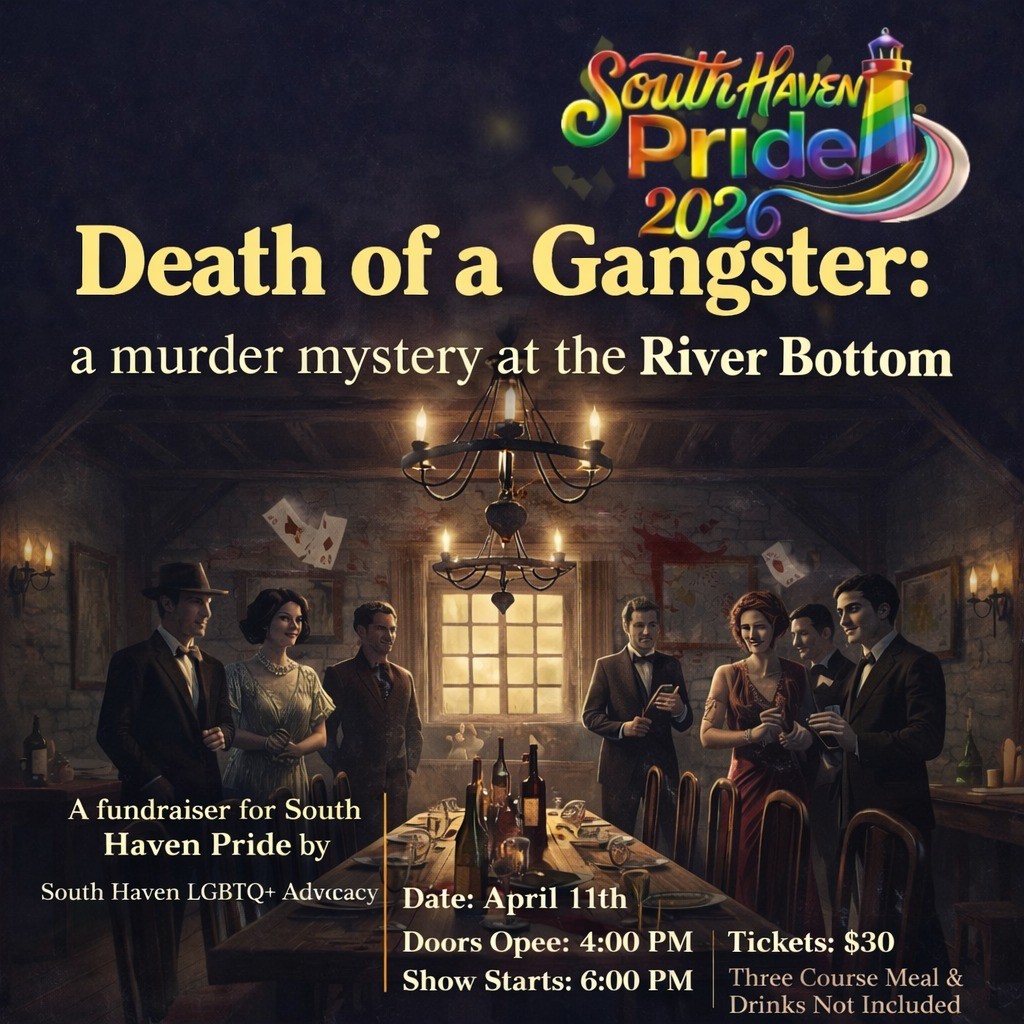Step into the shadows of the speakeasy and join us for Death of a Gangster: A Murder Mystery at the River Bottom — a thrilling, 1920s-themed fundraiser supporting South Haven Pride!