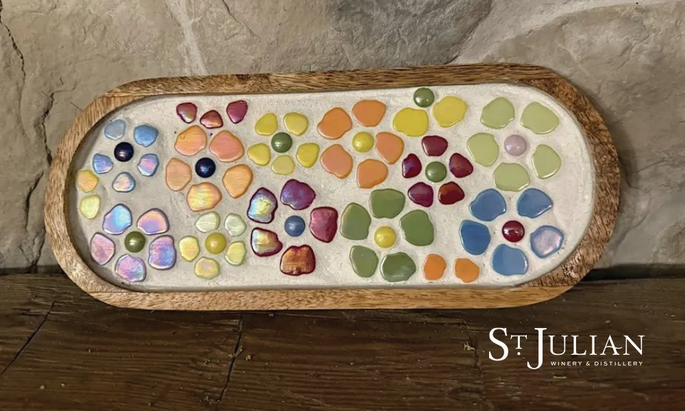 A crafty night out is calling. Join us at the St. Julian Paw Paw tasting room for a fun evening designing and creating your very own mosaic vanity tray. It’s the perfect excuse to grab your friends, bring the family, and make something beautiful while enjoying the tasting room atmosphere. No experience is needed and we will guide you through the entire process. All supplies are included, and you will leave with a finished tray, including the grouting. It will just need to dry overnight once you get it home. Drinks will be available for purchase, prices start around $42 per person, and spots are limited, so be sure to reserve yours soon.